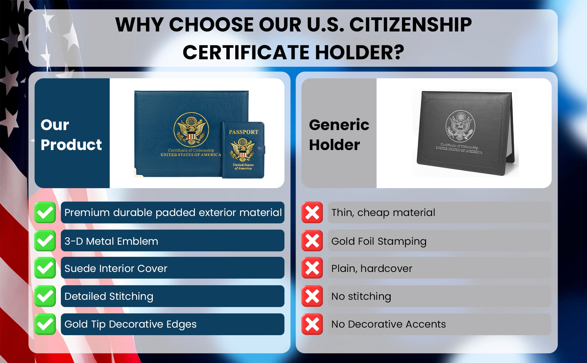 Our certificate and passport holders combine functionality with a touch of luxury, designed exclusively for new U.S. citizens.